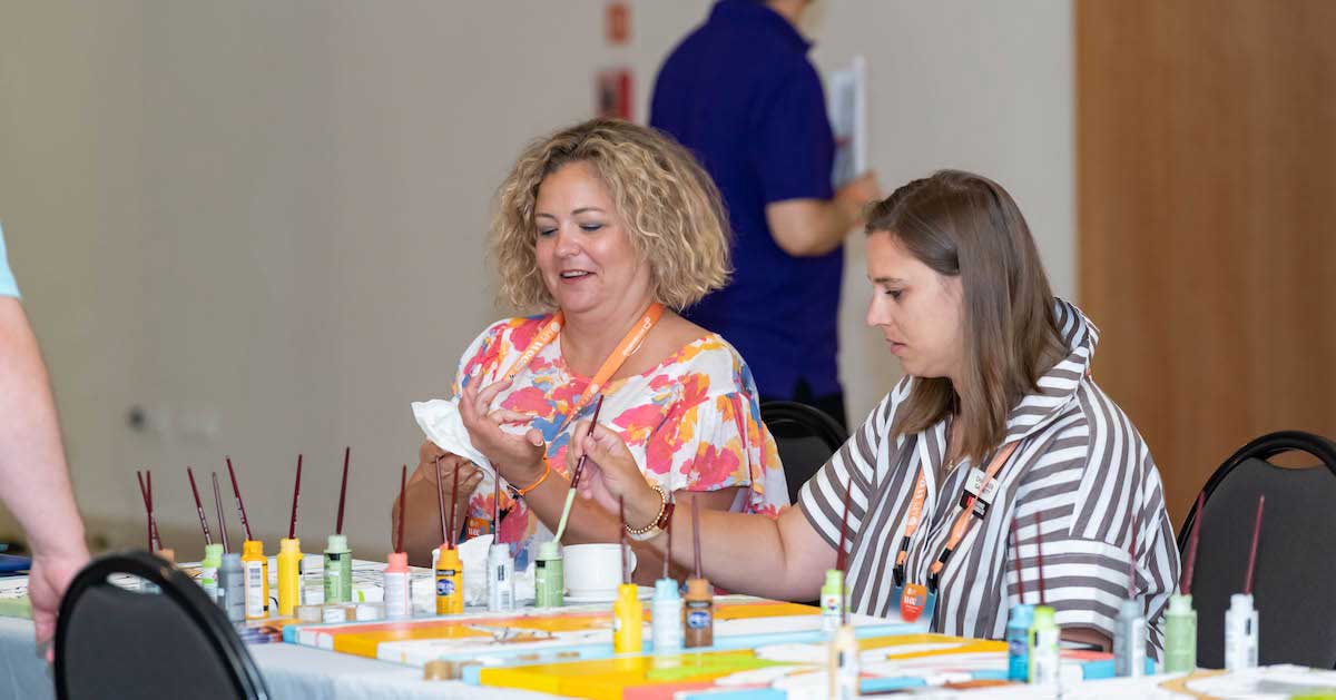 - Two full paintings (six panels each) were completed by WEC23 attendees. Throughout the show, attendees dropped by the Foundation for Hospital Art in the Marketplace to help paint selected panels of these fun, attractive murals. The final paintings will be displayed at a local children’s cancer treatment center. (Check out our interview with Scott Feight, executive director of the Foundation for Hospital Art, about how the organization got started and why the connection with meetings and events is so important.)