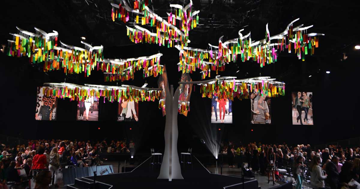 ML: We built a large Tanabata tree as the center stage set and started by showing the tree with no ribbons. When the stylists broke into regions for individual meetings, we deconstructed the main tree and moved each of the 10 branches to the 10 subgroup gatherings, where participants wrote their concerns for the coming months on a ribbon and tied it to the trees as a demonstration of their release of their worries. Then, as attendees transitioned from breakout session back to the general session, we quickly reassembled the ribbon-filled branches to the main tree back at center stage.