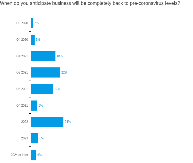 Accordingly, when asked about the timing of a return to pre-pandemic business, the most popular option was “2022.”