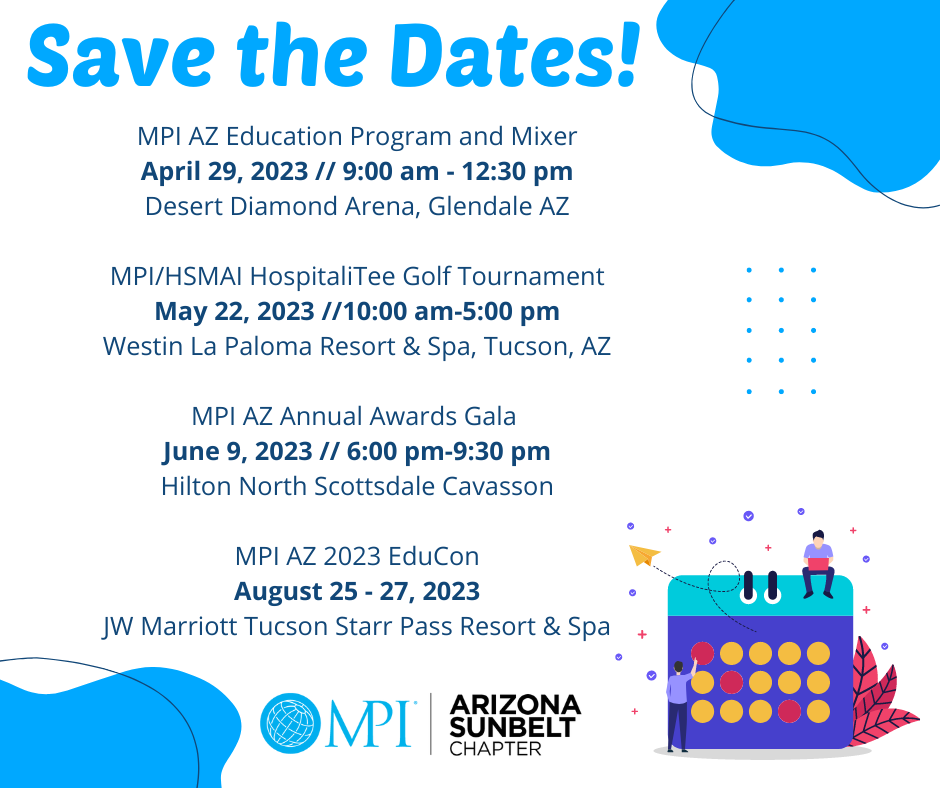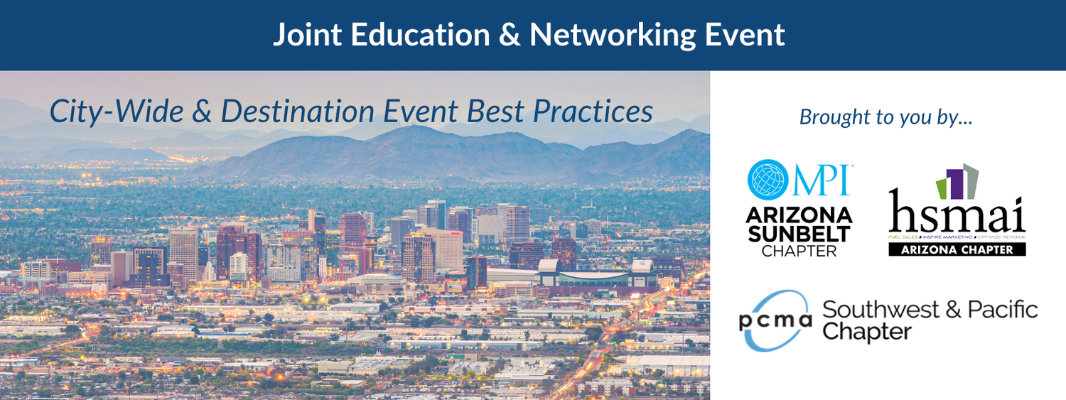 Three leading hospitality/meeting industry associations - Meeting Professionals International (MPI) Arizona Sunbelt Chapter, the Hospitality Sales & Marketing Association International (HSMAI) Arizona Chapter, and the Professional Convention Management Association (PCMA) Southwest and Pacific Chapter, are teaming up for this special program.