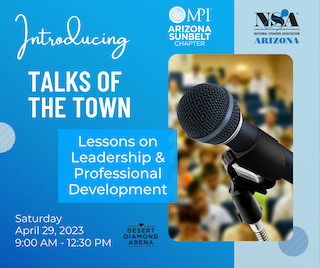 MPI is teaming up with the National Speakers Association Arizona Chapter (NSA) to bring you an exciting speaker showcase! Join us Saturday, April 29th from 9am to 12:30pm. Start your morning off with coffee, breakfast and good conversation before we hear from a variety of speakers and topics.