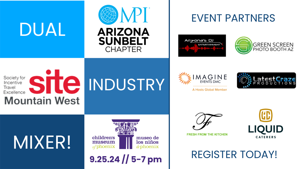 Join us on September 25th, 2024, from 5:00 PM to 7:00 PM for the SITE Mountain West and MPI AZ Joint Member Mixer. This amazing venue offers the perfect setting to explore future possibilities while networking with fellow organizational members and making new connections.