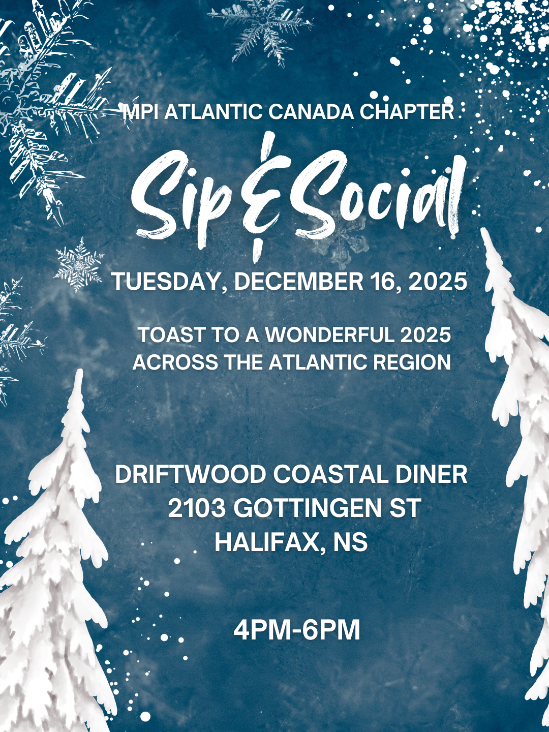 Join us for the reimagined Planners & Pours — now Sip & SocialCelebrate the season MPI Atlantic Canada Chapter style, with an evening of connection, celebration, and holiday cheer!