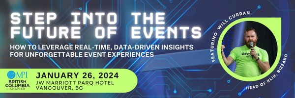 Join the MPI BC Chapter at the JW Marriott Parq Hotel on January 26th for How To Leverage Real-Time Data-Driven Insights for Unforgettable Event Experiences, sponsored by JW Parq Marriott Hotel, Encore and NewSense Studio.