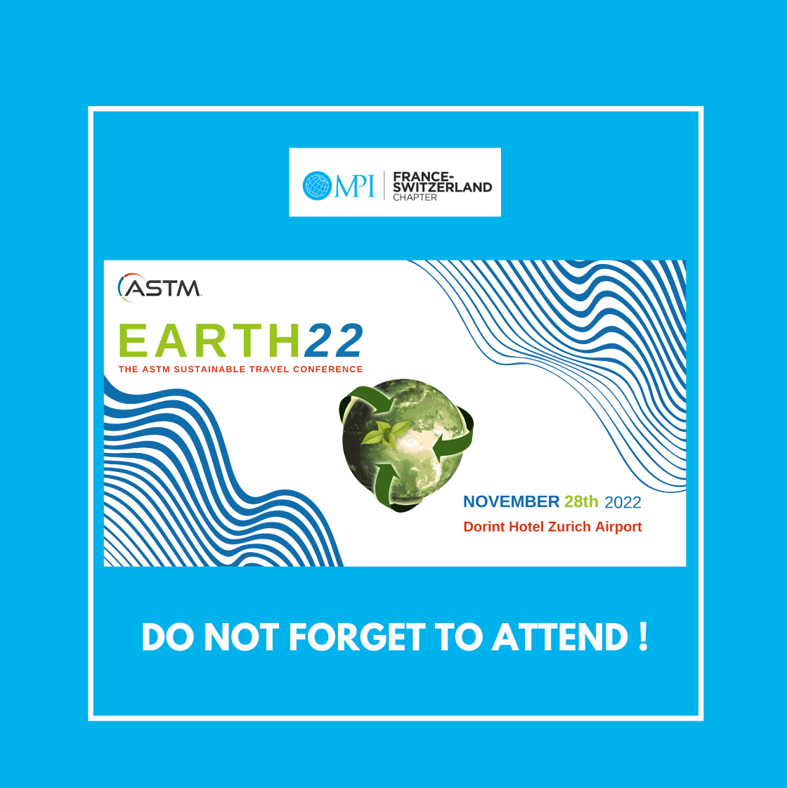 MPI France-Switzerland est très fier de participer à la prochaine conférence organisée par ASTM - Association of Swiss Travel Management à #Zurich le 28 novembre 2022.