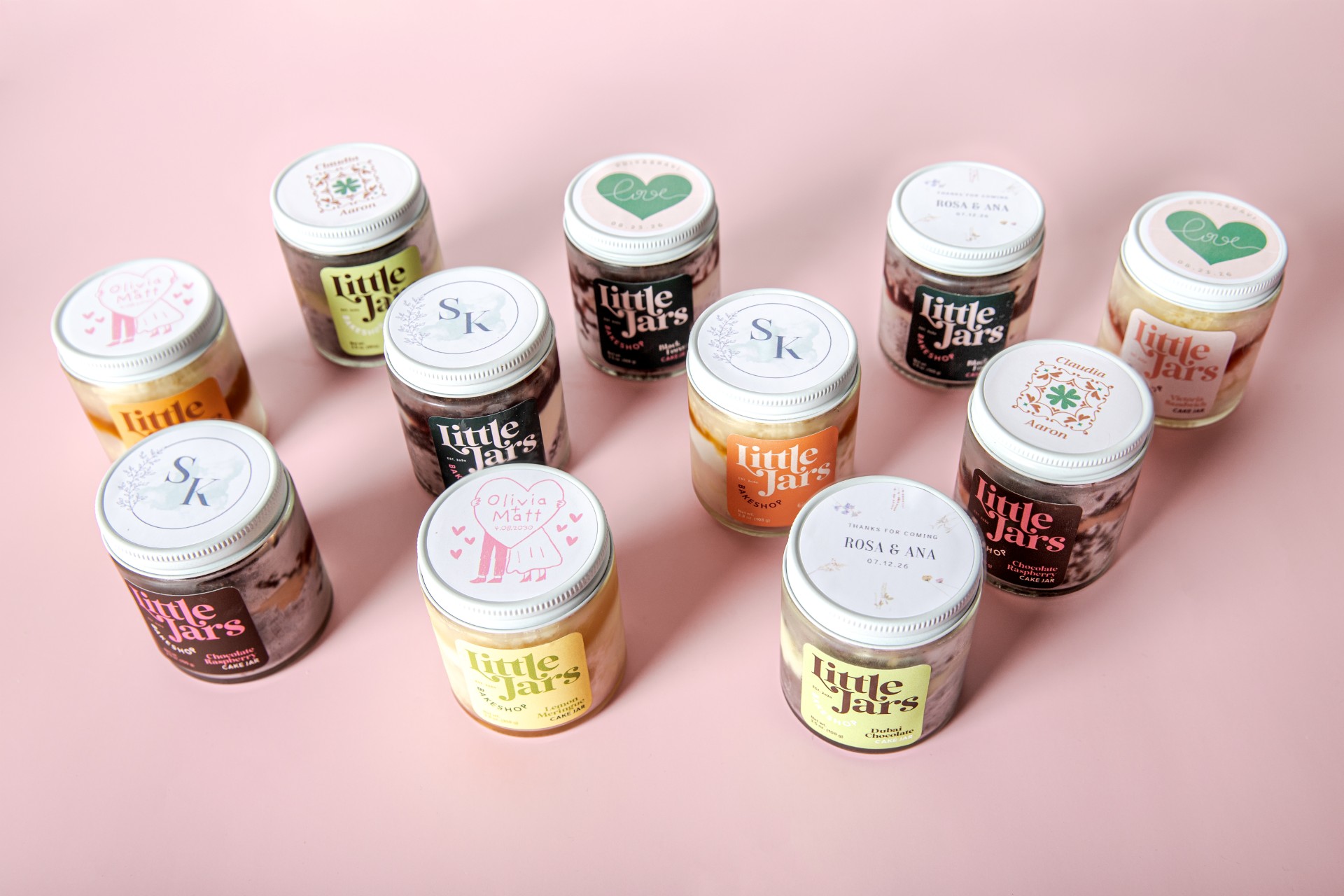 Layers of cake baked from scratch, house-made buttercreams and ganache, and thoughtful fillings—all in premium glass jars. Every element is made by hand in small batches. The result travels beautifully and reflects the care you put into selecting partners.