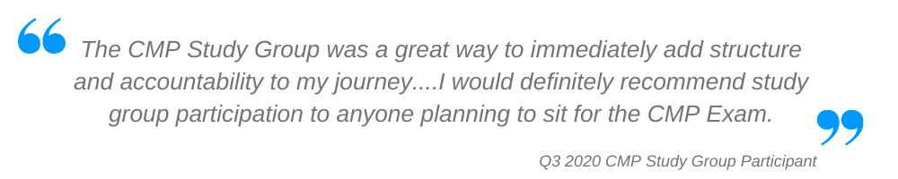 The EIC says those who prepare for the CMP Exam do better when they study in a group. MPI Georgia Chapter has offered a CMP Study Group for more than 30 years. The MPI Georgia Chapter CMP Study Group Committee is dedicated to supporting CMP candidates by: