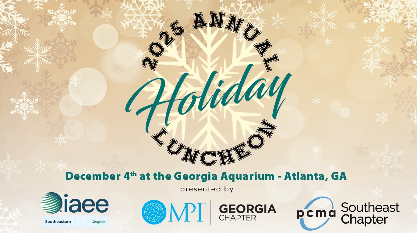 The IAEE SE, PCMA SE, and MPI GA Chapters’ co-hosted Annual Holiday Luncheon is one of the most popular events on the calendar as the industry comes together to celebrate the holiday season. It is a great occasion to experience wonderful food and beverages, holiday music, and the opportunity to enjoy getting together with industry friends.