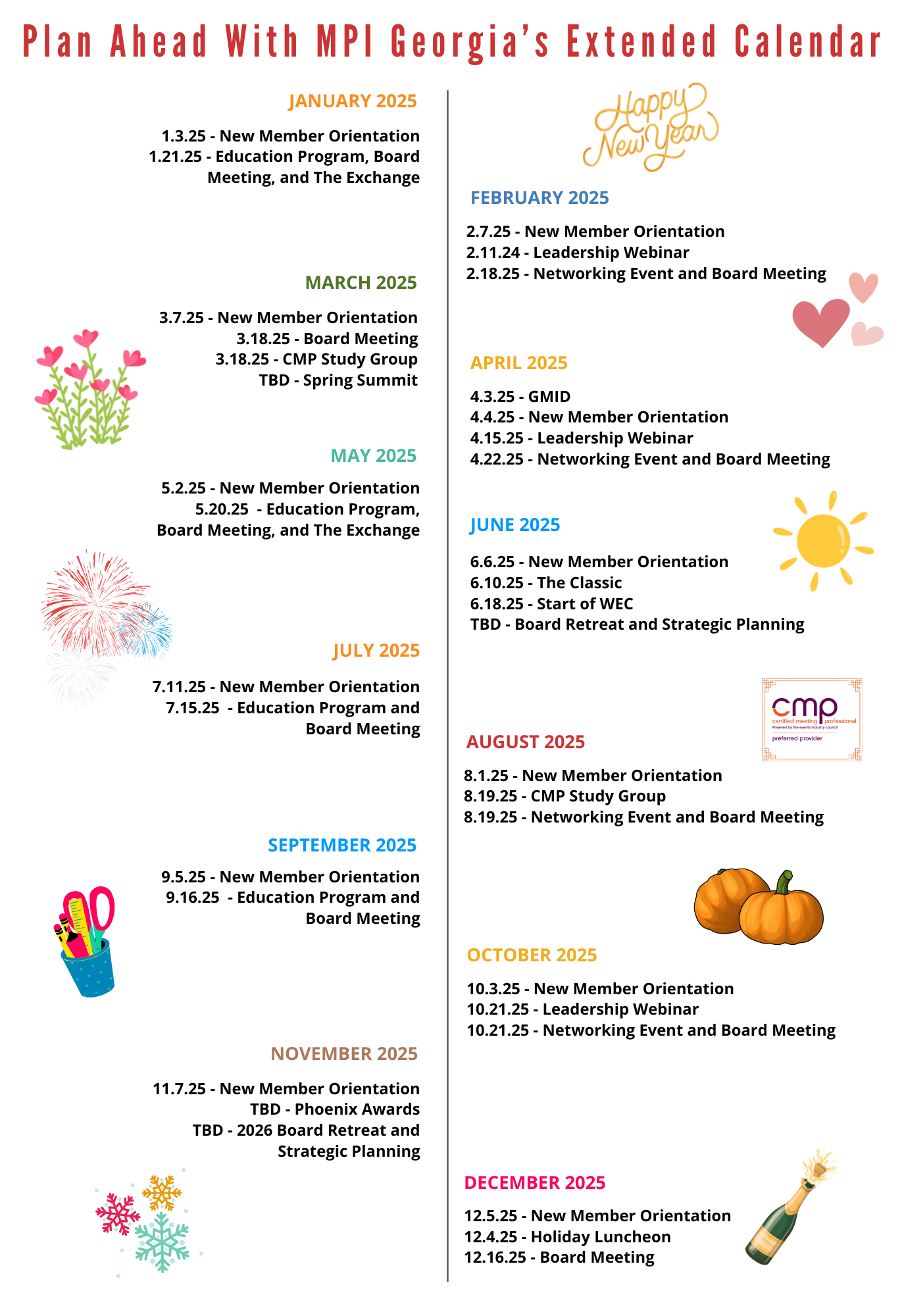 If you have registered but are unable to attend the meeting, you may substitute another employee from your company at no additional charge. Please send written notification of this change before 5:00 PM on Thursday, October 28 to info@mpigeorgia.org. After that time, substitutions will need to be made onsite and a name badge will not be guaranteed.