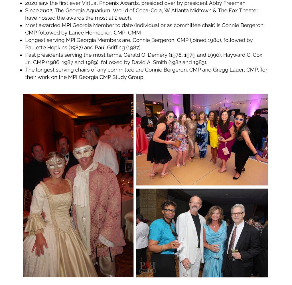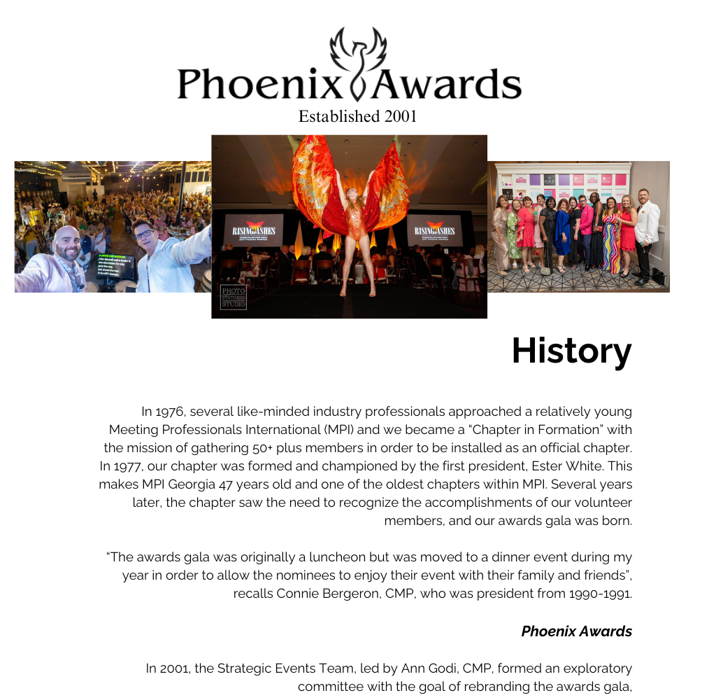A huge thank you to our Premier Annual Sponsors: Atlanta CVB and PhotoSynthesis Studio; and to our 2018 Phoenix Awards Sponsors: 360 Destination Group, Active Production and Design, AlphaGraphics of Buckhead, Amp'd Entertainment, BOLD Design, Caesars Entertainment, Collection Event Furnishings, Discover DeKalb CVB, Far Out Galaxy, Flowering Events, FoxHall Sporting Club, Garrett Popcorn Shops, Georgia Speakers Bureau, GTS Entertainment, Jeenyoux, Jekyll Island Georgia, JW Marriott Nashville, L.E.D Experience, Loews Hollywood Hotel, Los Angeles Tourism and Convention Board, Louisville CVB, Party Tables, Peachtree Tents & Events, PSAV W. Atlanta Midtown, Salamander Hotels and Resorts, World of Coca-Cola, Vinny Verelli, and the W. Atlanta Midtown!