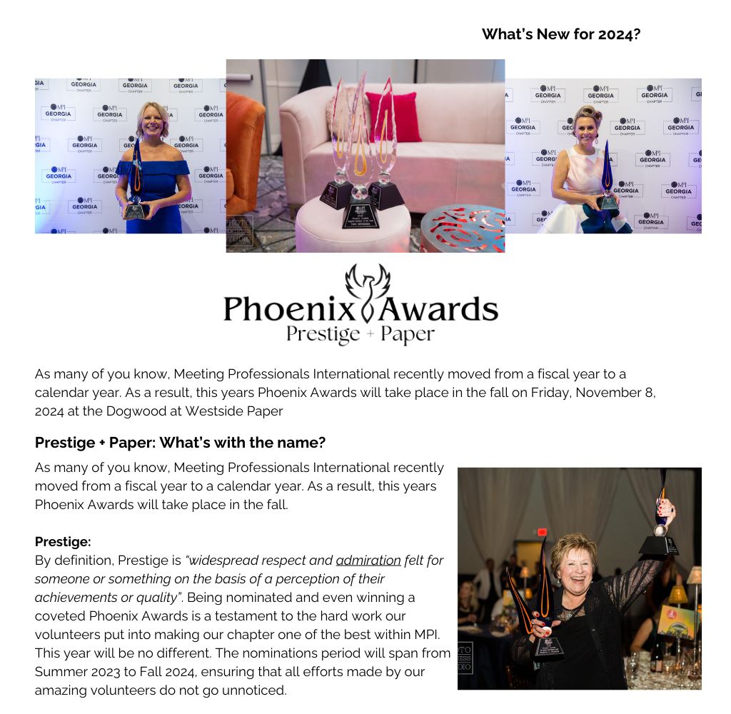 Description: Awarded to the MPI Georgia volunteer committee (award accepted by the committee chair) that provided a significant impact and valuable contribution to our chapter during the 2022-2023 fiscal year. Note that Phoenix Awards 2022 committee is eligible this year.