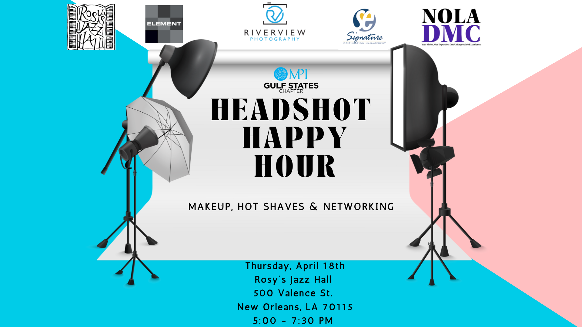 Join the MPI Gulf States Chapter at Rosy’s Jazz Hall for a Headshot Happy Hour, featuring a chic mix of makeup, hot shaves, headshots, and networking.