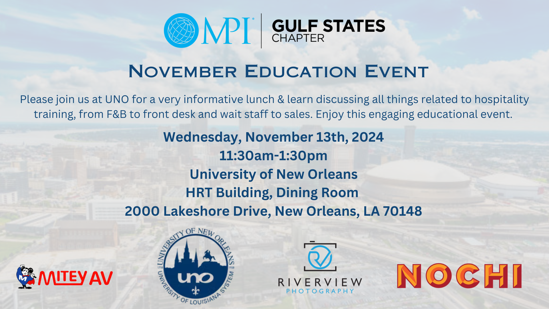 Elevate your hospitality game in New Orleans by mastering essential communication skills that enhance guest experiences and drive sales, especially as we approach Super Bowl 2025. This seminar will explore how effective communication can transform guest interactions, foster teamwork, and build stronger relationships within your staff. Powered by NOCHI’s Hospitality Investment Training (HIT), you’ll learn strategies for delivering personalized service, managing high-demand events, and creating memorable experiences for every guest. With expert insights and real-world examples, you’ll discover how to communicate with impact, ensuring your team works collaboratively to provide an authentic New Orleans experience.