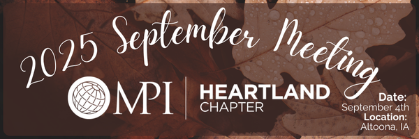 AGENDA: 10:30 a.m. Registration opens 11:00 a.m. Meeting begins Welcome, Introductions, Ice breaker 11:15 a.m. Speaker: Dawn Fiedler 12:15 p.m. Lunch 1:00 p.m. Chapter Announcements 1:15 p.m. Prairie Meadows sales team + venue tour 1:30 p.m. Event Concludes 1:45 p.m. MPI Heartland Chapter Board Meeting