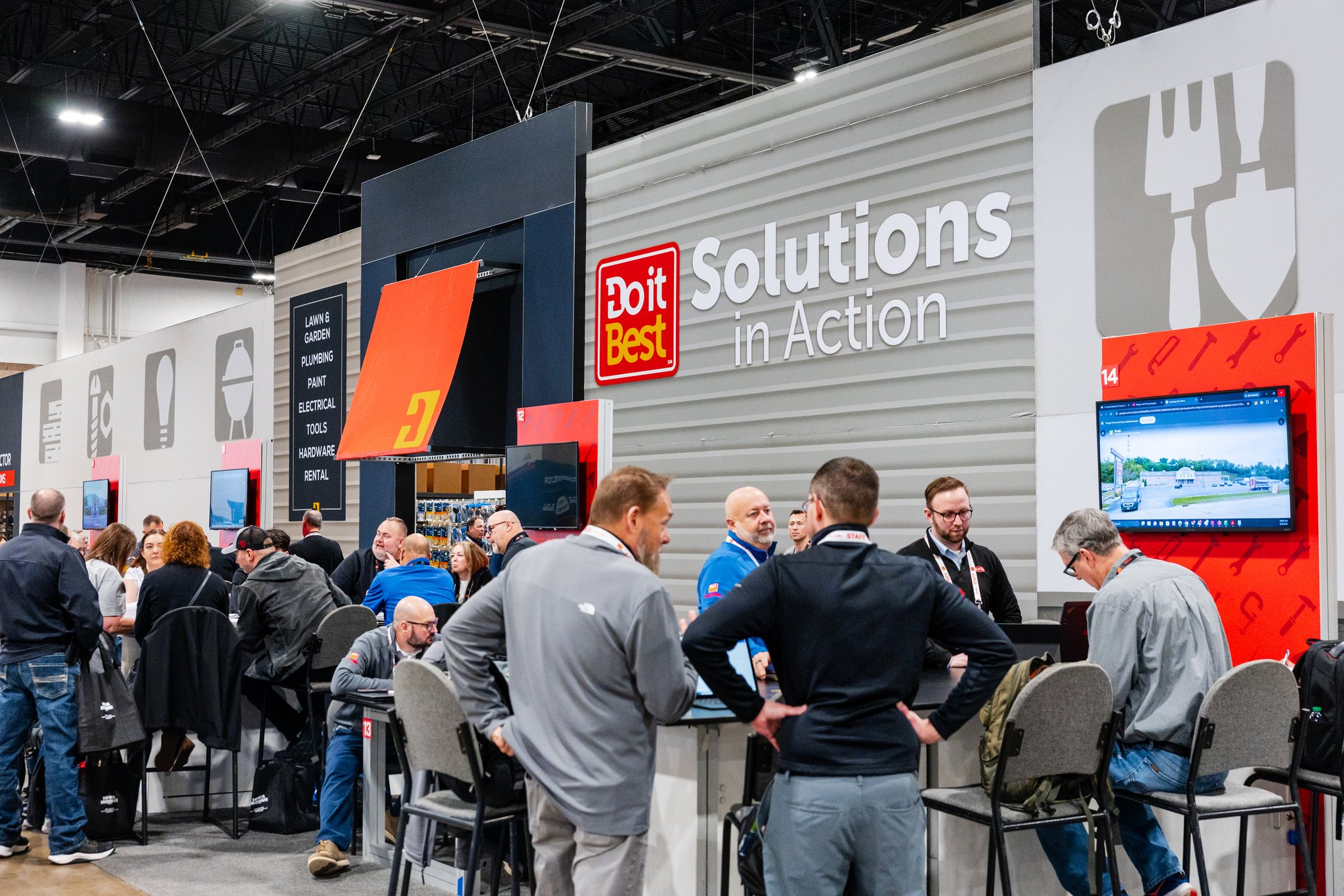 Rather than a random trade show layout, the exhibit floor is organized by departments—plumbing, electrical, lawn and garden, and more—allowing attendees to “shop” the market in the same way they would navigate a store.