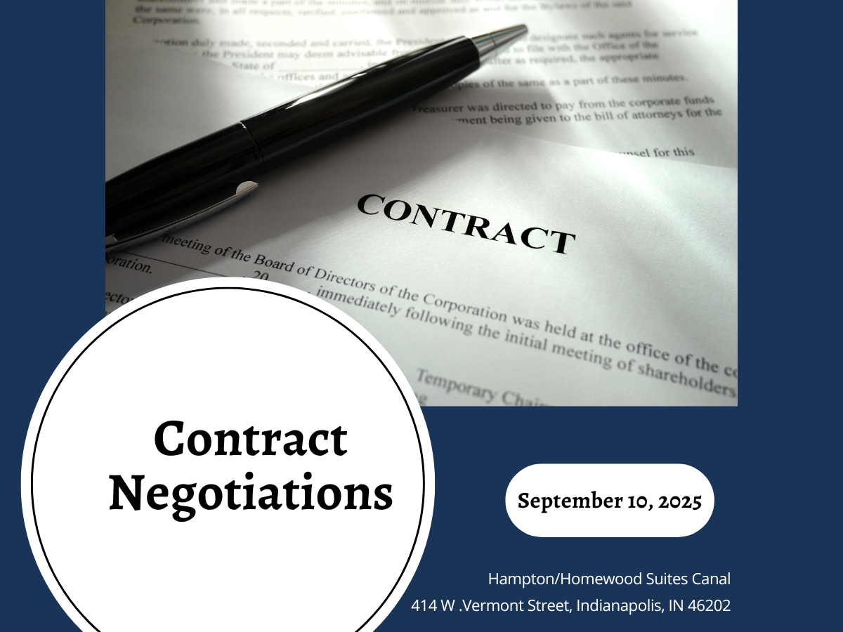 Join MPI Indiana for an engaging panel discussion designed to equip meeting professionals with practical strategies and insights for navigating contract negotiations with confidence. Whether you're working with hotels, venues, AV providers, or destination partners, understanding how to approach negotiations can make all the difference.