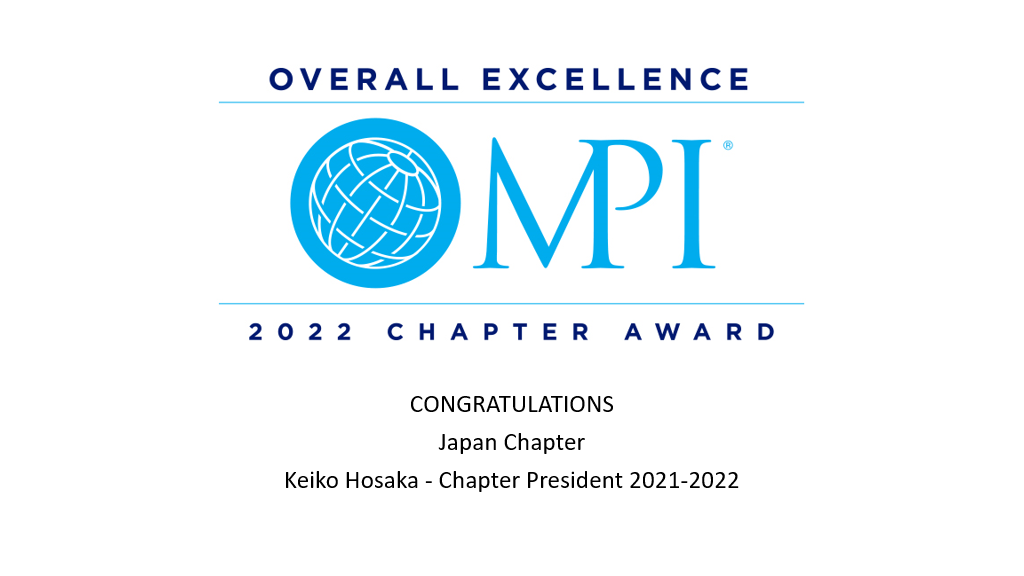 この度、MPI Japan Chapterが「Chapter Excellence Award」に選出されました。