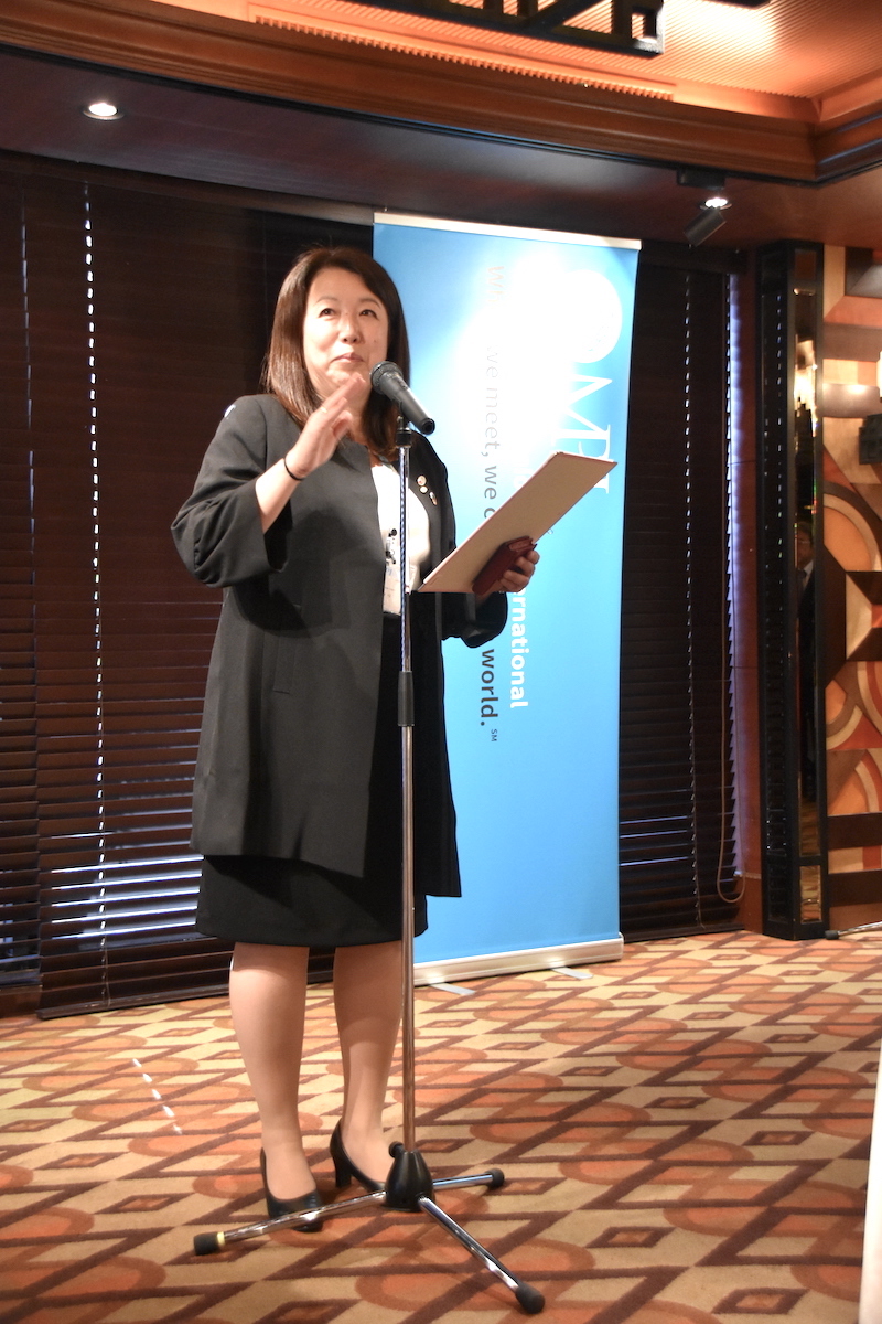 開会の挨拶で安田弓会長から、五輪やメガスポーツイベントの開催、IRの設置など、これまでに以上に海外のプランナーからの注目が集まっていることを自身の体験を踏まえて説明しました。またJapan Chapterが会員継続率(Retention Rate)で表彰されたことについては、「これまで地道に活動してきたことが顕在化しただけ。今後は他の支部同様本部から高い期待を寄せられる」とコメント。安田会長は1月1日付けでMPIの社会貢献活動の委員にも任命されるなど、Japan Chapterのプレゼンス向上へのさらなる活動に取組みます。