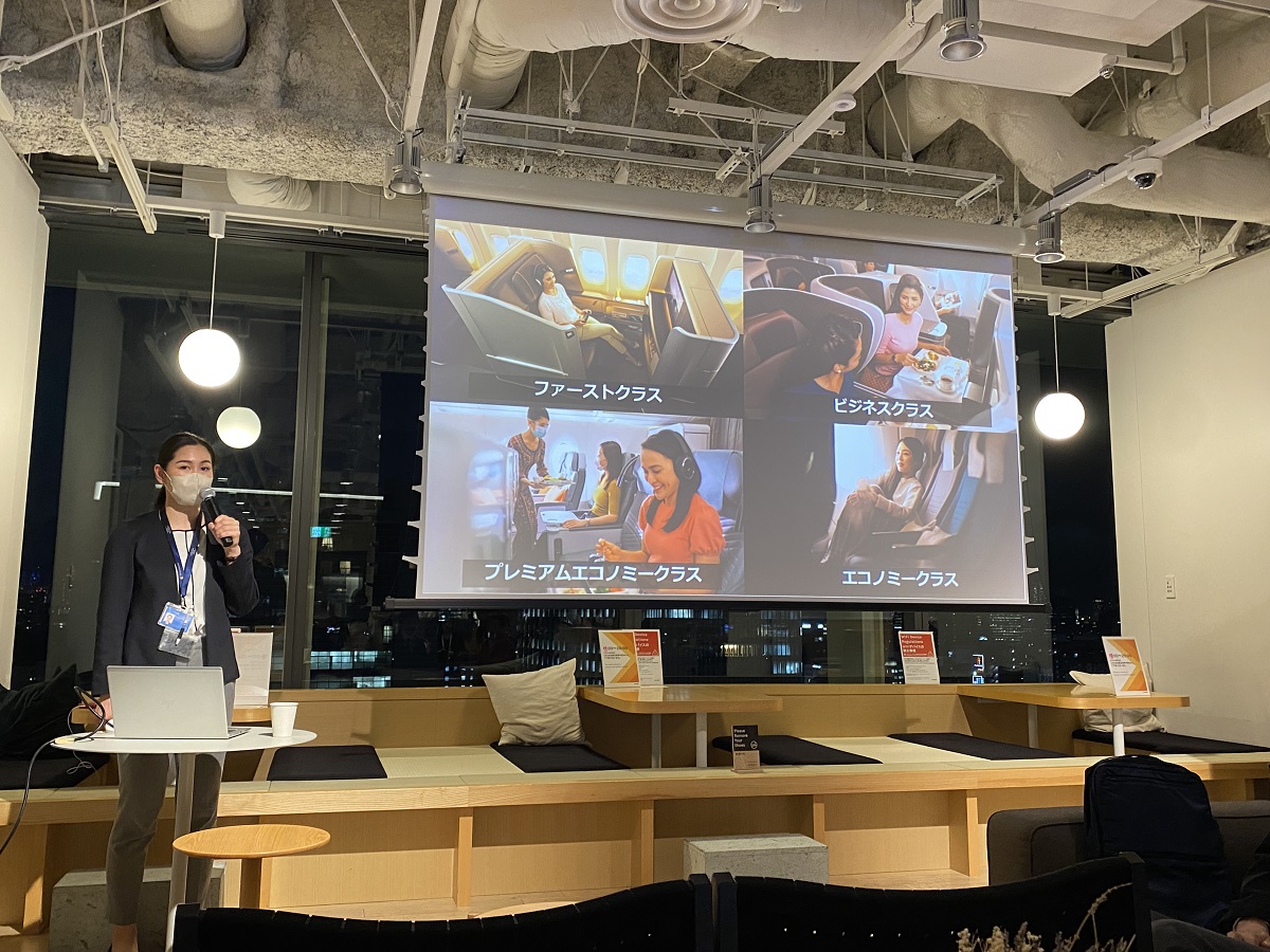 シンガポール航空(SQ)法人営業部係長の渡久地祐美氏は「シンガポール航空のご紹介・SDGsの取り組みについて」紹介しました。SQの現在の運航状況とフライトスケジュール、プロダクトとサービス、シンガポール・チャンギ空港について、SQが取り組むMICE特典のプログラム、サステナビリティ、カーボンオフセットプログラムの取り組みについて解説しました。