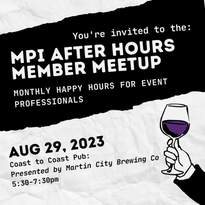 You’re invited! Join us Tuesday, August 29th, 2023 at Coast to Coast Pub: Presented by Martin City Brewing Co, for a MPI Member Meetup! No registration required. Truly a get together for meeting professionals.