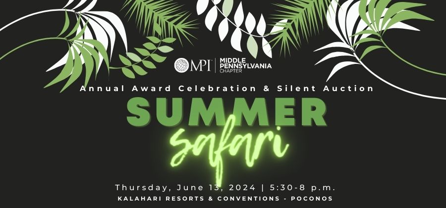 Welcome to the wild side! You’re invited to a Summer Safari with the MPIMP for the Annual Award Celebration & Silent Auction on June 13 at the Kalahari Resorts & Conventions - Poconos. Don your finest khaki or unleash your inner animal with some wild prints as you enjoy evening reception refreshments from Kalahari Culinary.
