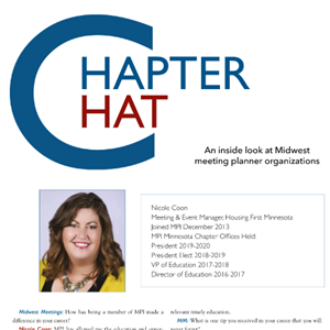 MPI Minnesota Chapter President Nicole Coon was featured in Midwest Meetings magazine Spring 2020 Edition after being interviewed for a chapter chat. Nicole touches on how being a member of MPI has enhanced her career and gives some great advice for members of meeting planner organizations.