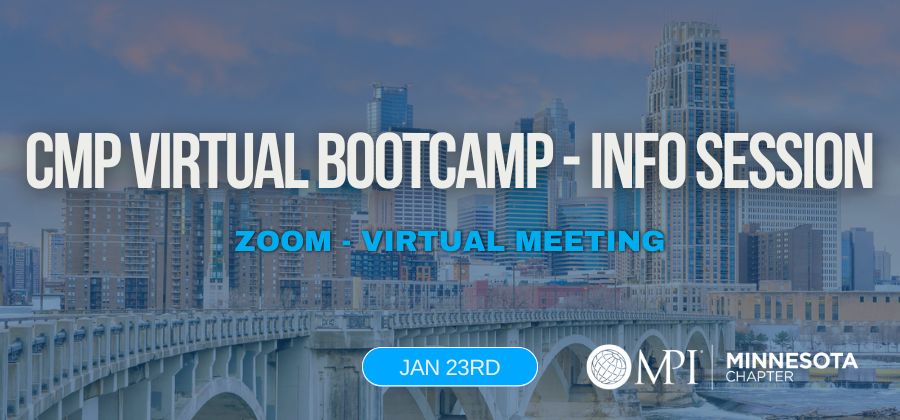 Join us for an information session to learn more about an upcoming 8-week virtual CMP bootcamp offered in collaboration with seven other MPI Chapters. As you set your goals for the new year, this participant led bootcamp offers a structured, supportive way to work towards your CMP certification. Participants take the lead by presenting assigned domains, while facilitators serve as encouraging guides. While the bootcamp does not offer EIC credits, this participant-led format allows it to be offered low costs, making it an accessible and collaborative option for CMP Exam preparation.