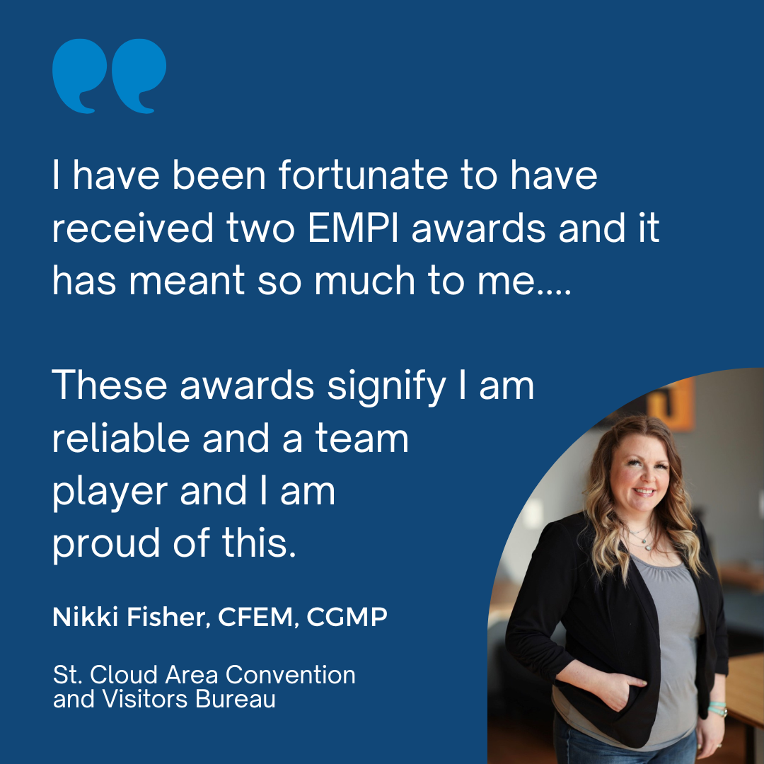 Excellence in MPI (EMPI) (pronounced "em-pee") Awards are given to MPI Minnesota Chapter members who exemplify strong support and participation needed to help the chapter and industry grow and succeed.