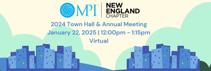 Please mark your calendars to join us on January 22, 2025 for the MPI New England Chapter Town Hall & Annual Meeting! To register, please visit