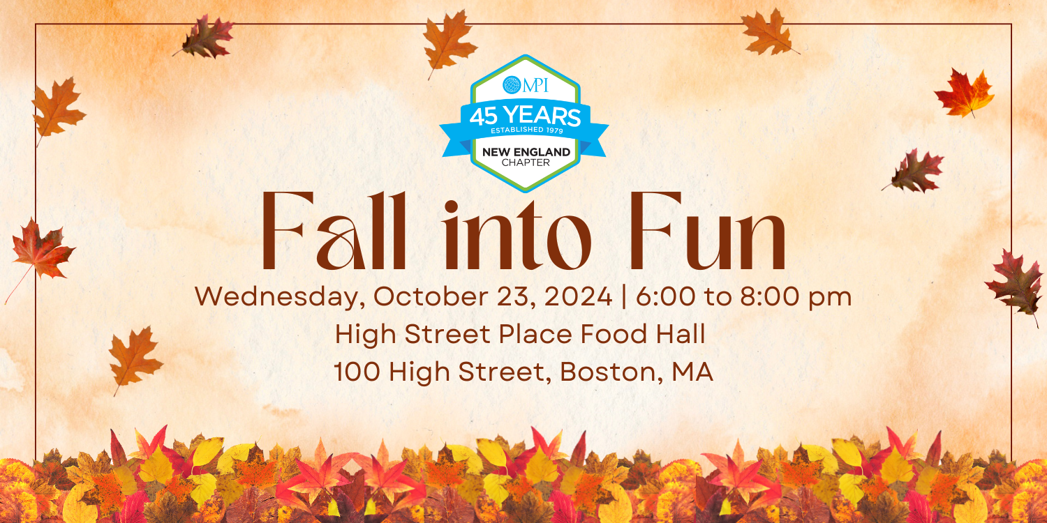 Fall is here, and there’s no better way to celebrate than with your MPI New England community at High Street Place—Boston’s ultimate hotspot for fun, food, and drinks! Join us for an evening of networking, socializing, and seasonal festivities, all while indulging in mouthwatering appetizers from 20 of Greater Boston’s top food and beverage vendors, handpicked by the city’s culinary rockstars. Whether you're reconnecting with colleagues or making new friends, this vibrant urban venue sets the perfect stage for an exciting night. Don’t miss out—register now and experience the best of Boston’s food scene!