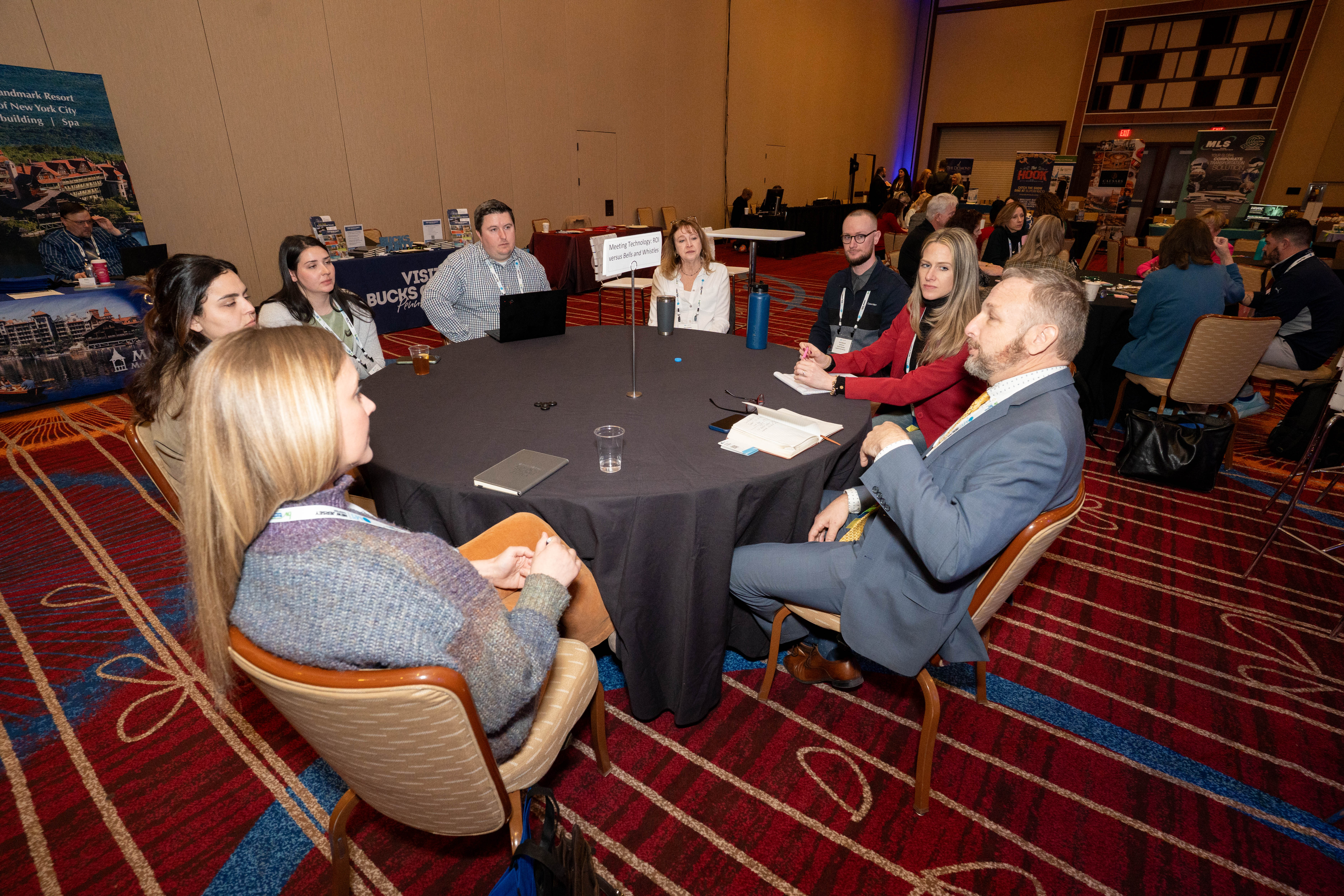 An overflow table of experienced MEETS participants joined MPI New Jersey Chapter President Trish Rafferty during a roundtable session on “Navigating the NEW Meetings Landscape” – the chapter theme for 2025. The collective expertise around the table discussed multiple concerns and contributed solutions that were currently being used to resolve the problems.