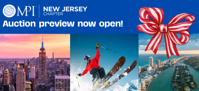 Join in on the Fun and be Part of MPI New Jersey's Virtual Silent Auction and Walk Away with Some Extraordinary Items! Featuring over 60 prizes valued at over $38,000, the auction includes hotel stays, golf packages, gift certificates, jewelry and more! When Place Your Bids: The auction is live through November 27th (5pm ET) Winners will be contacted within 48 hours after the bidding closes to finalize payment before items are shipped. Who Anyone may participate and bid on items, so feel free to share with your friends and family. Why As a non-profit, MPI-New Jersey counts on your support of our fundraising efforts so we may continue providing innovative education programs and networking opportunities to our community. What's next? 1. Follow us on social media, so you don't miss any of the updates on this great event! 3. View the auction items by clicking the button below, create an account, and scout out your favorite items. 4. Bidding open until November 13th to 27th. View Auction Site |