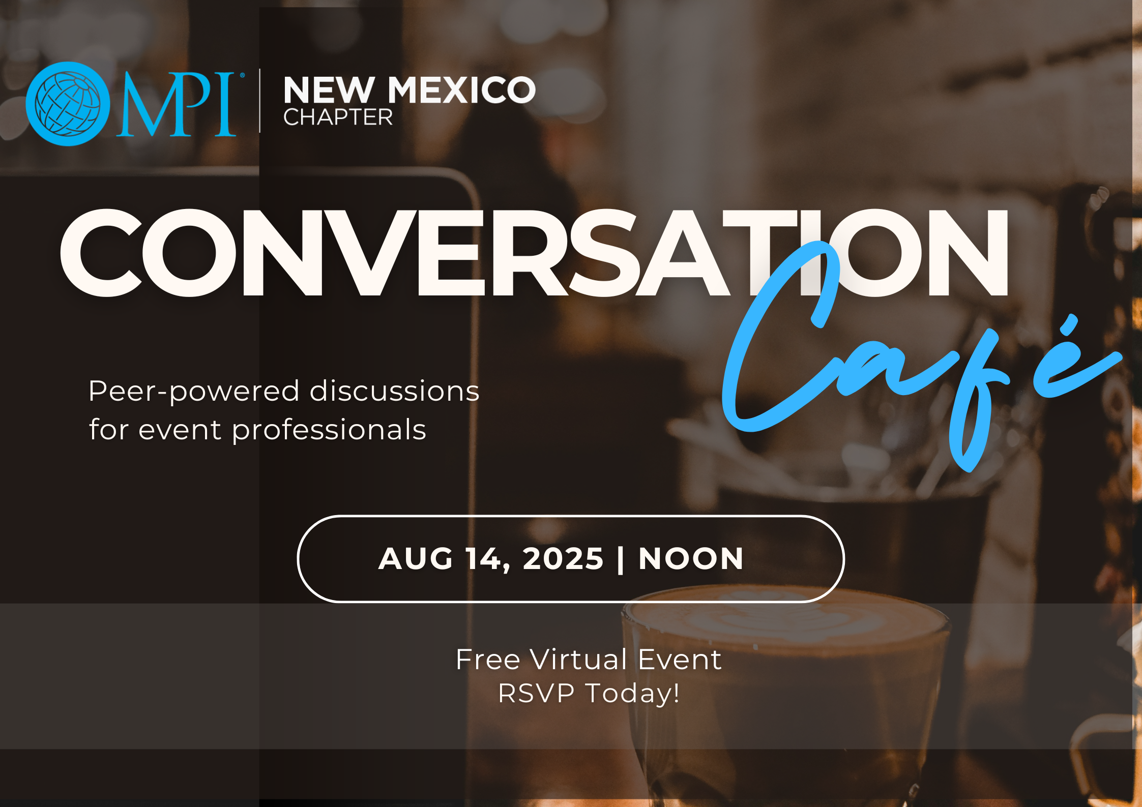 Pull up a chair and join MPI New Mexico for our Conversation Café—a casual, come-as-you-are gathering where professionals in the meetings and events industry connect, share, and spark new ideas.