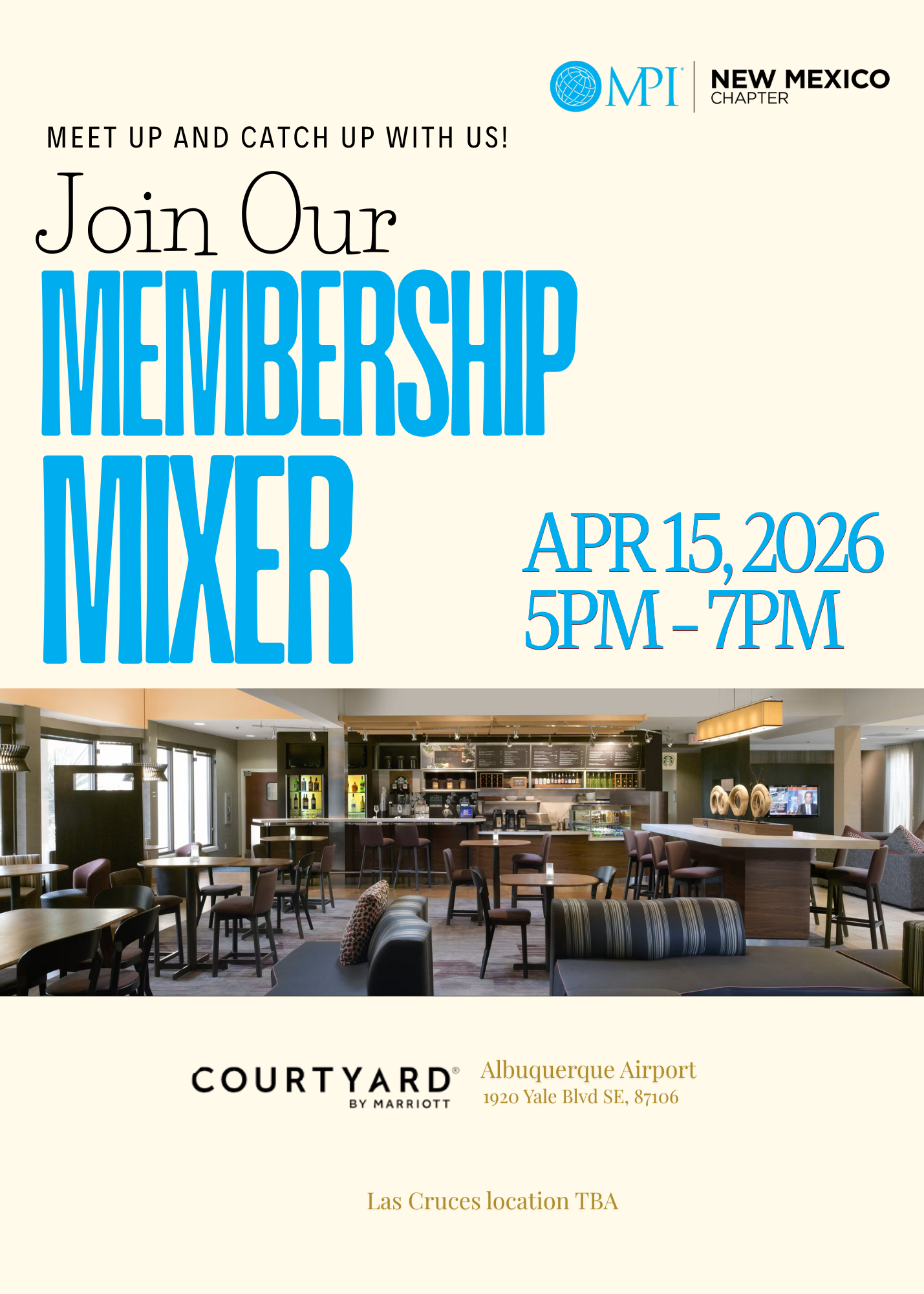 Join us for our MPI New Mexico Membership Meetup, a free, casual gathering designed to bring together meeting planners, suppliers, and industry professionals from across the state. With events hosted in two cities, you can choose the location that works best for you.