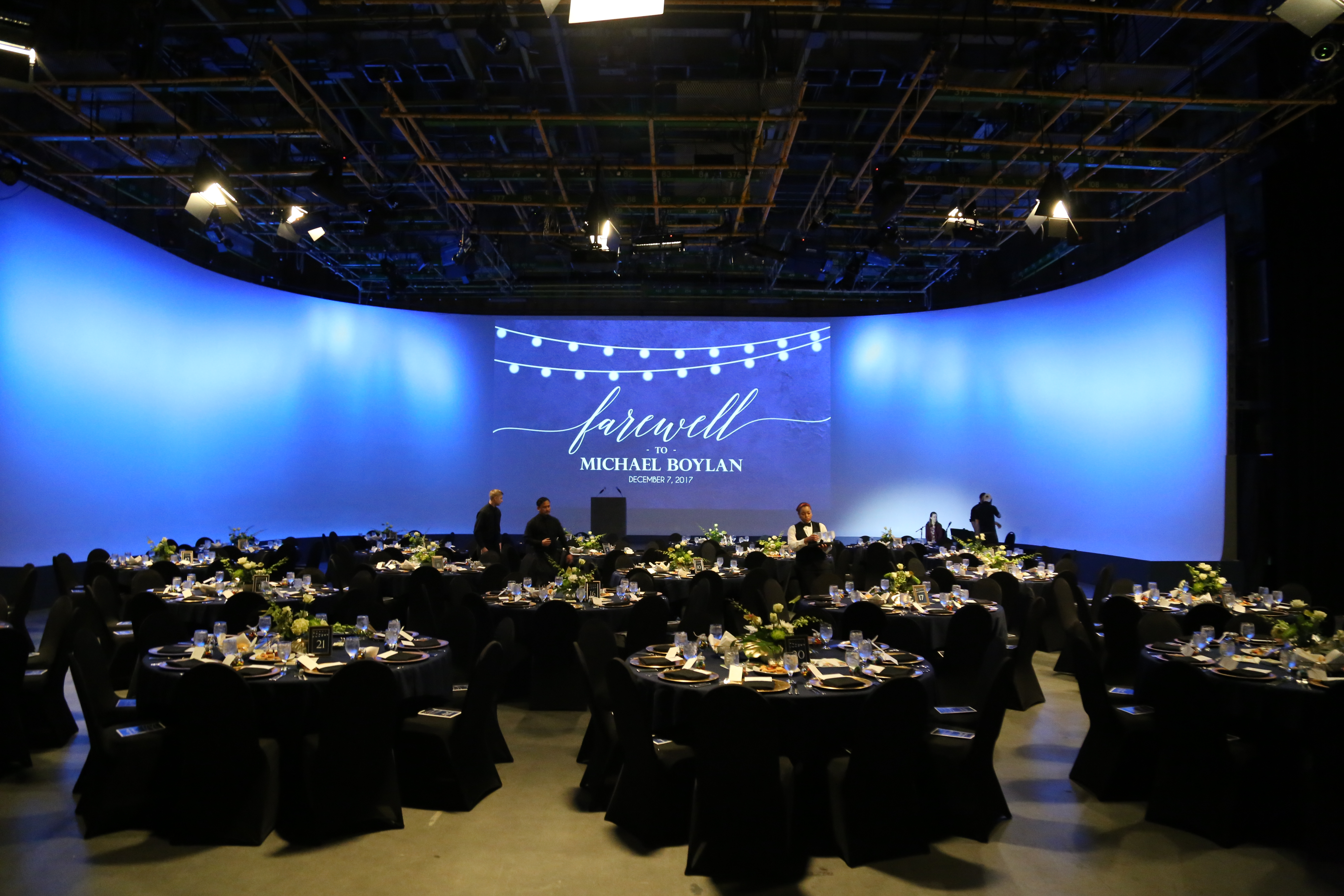 Over 7,800 square feet of unobstructed event & production space, total environmental control, LED full color capsule lighting, 30-foot ceiling heights and more. The three-wall cyclorama, totaling 125 linear feet and measuring 23 feet tall, adds infinite flexibility to this already incomparable production facility. Rental of the Soundstage also includes dressing rooms with showers, offices, access to wi-fi, food preparation and service areas and much more. Vehicular access to the studio is easy. All of this for a daily rental cost that will fit your budget.