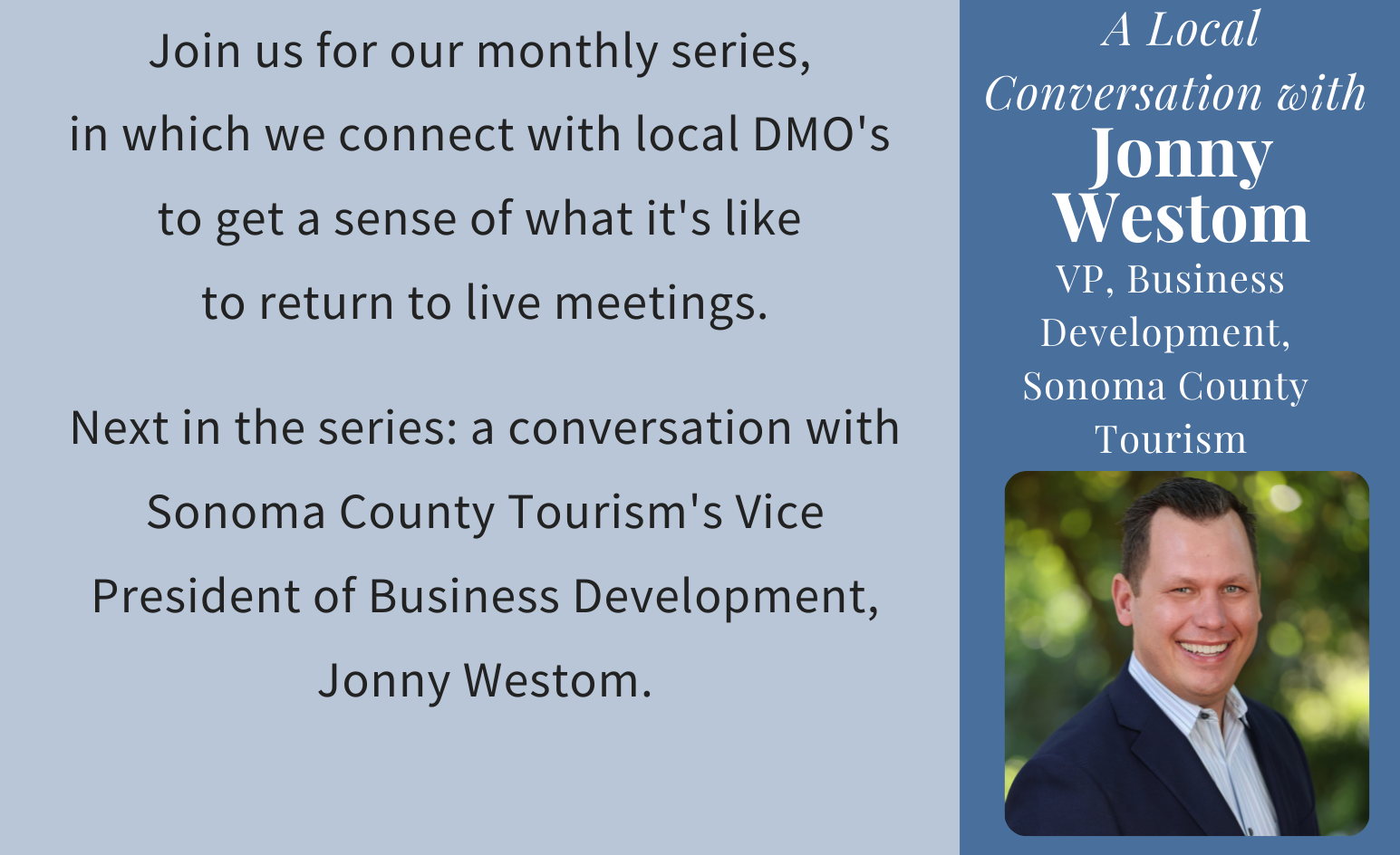Below is our interview with Jonny Westom, VP, Business Development of Sonoma County Tourism.
