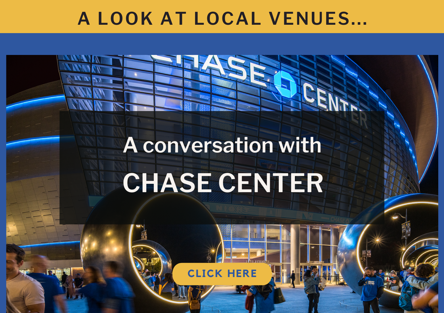 Don’t let the size of the arena intimidate you. We have many smaller clubs and private event spaces to work with. We also have our downtown Oakland Facility – Warriors Basketball Academy – that is set up for corporate teambuilding and activations. When you book with Chase Center we have a large team of client-focused event members here to help create a seamless event for You. We are able to hand-hold a client, who may not have worked with a venue of our size before. The more we know and understand your event details and production timeline, the better we can assist with creating a unique conference, meeting or event for you.