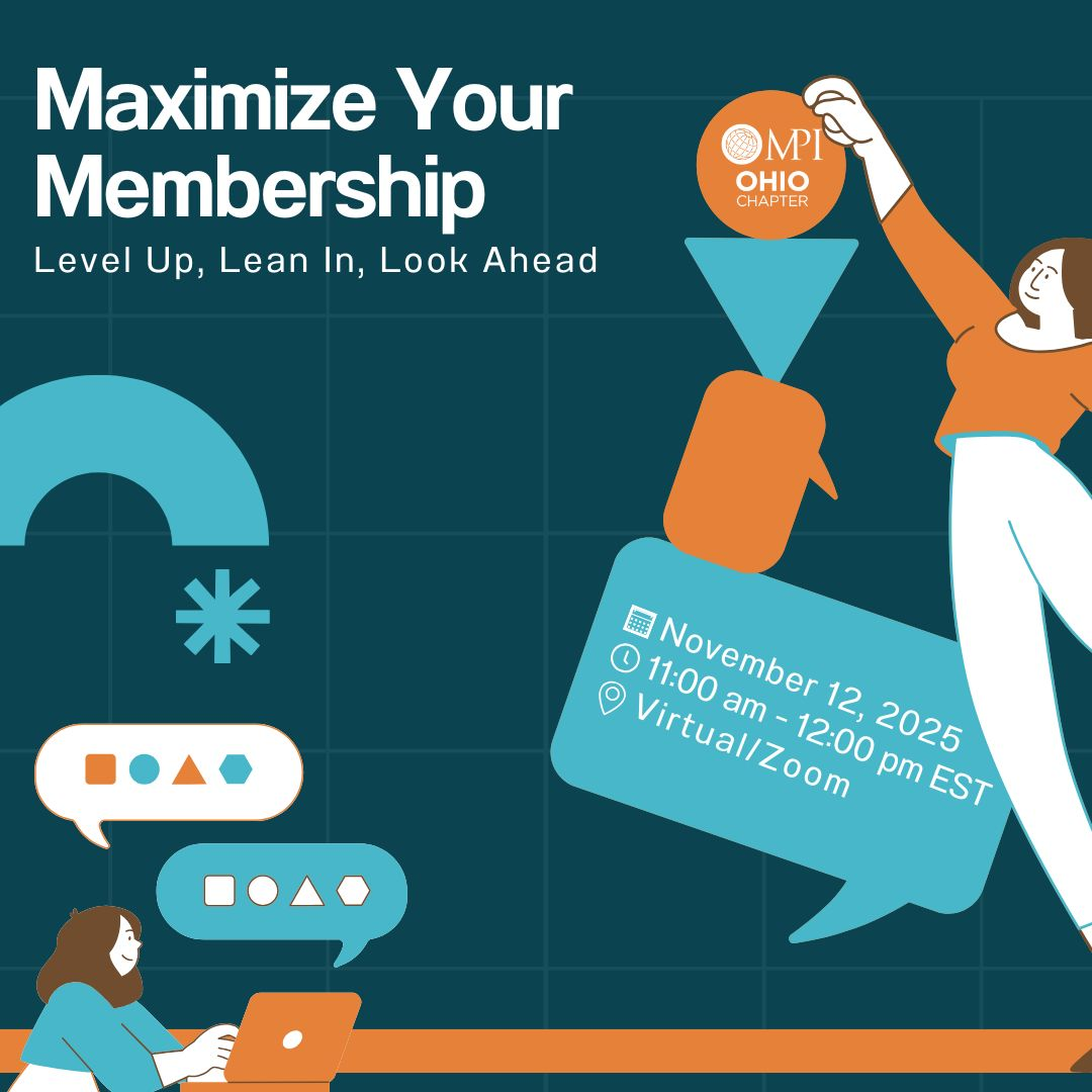 Join us on Wednesday, Nov 12 for an informative and fun presentation to learn more about the MPI Ohio Chapter and how to get the most of your membership. This event is for new and veteran members as well as those considering joining. It will include an interactive presentation with tips on how to find jobs, member information, free education courses and how to get involved. Learn about the exciting events coming up this year and find out about valuable chapter resources that will enhance your job and the value of your membership investment!