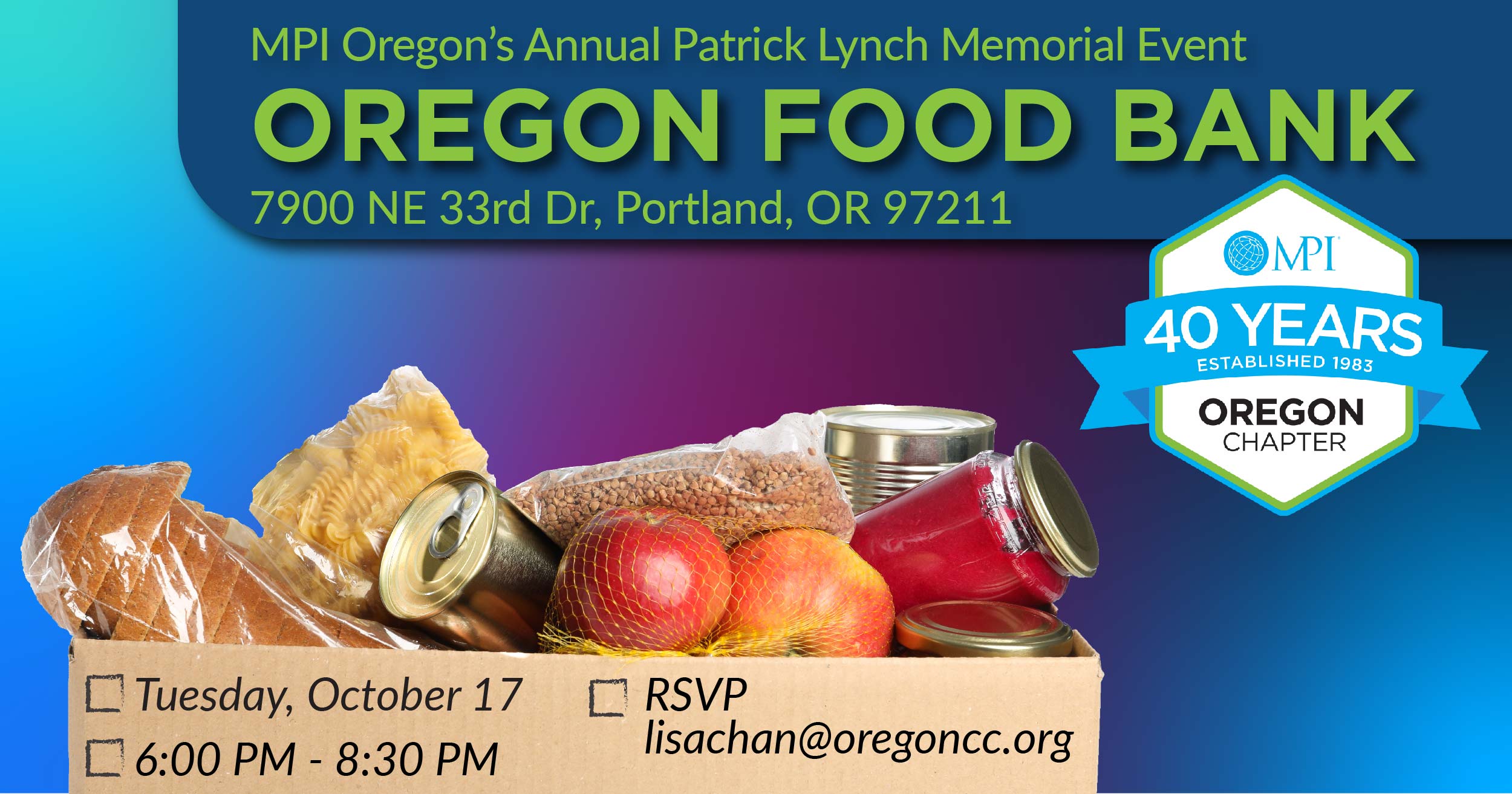Your helping hands are needed for MPI Oregon’s Annual Patrick Lynch Memorial event at the Oregon Food Bank on October 17th ... because no one should go HUNGRY.