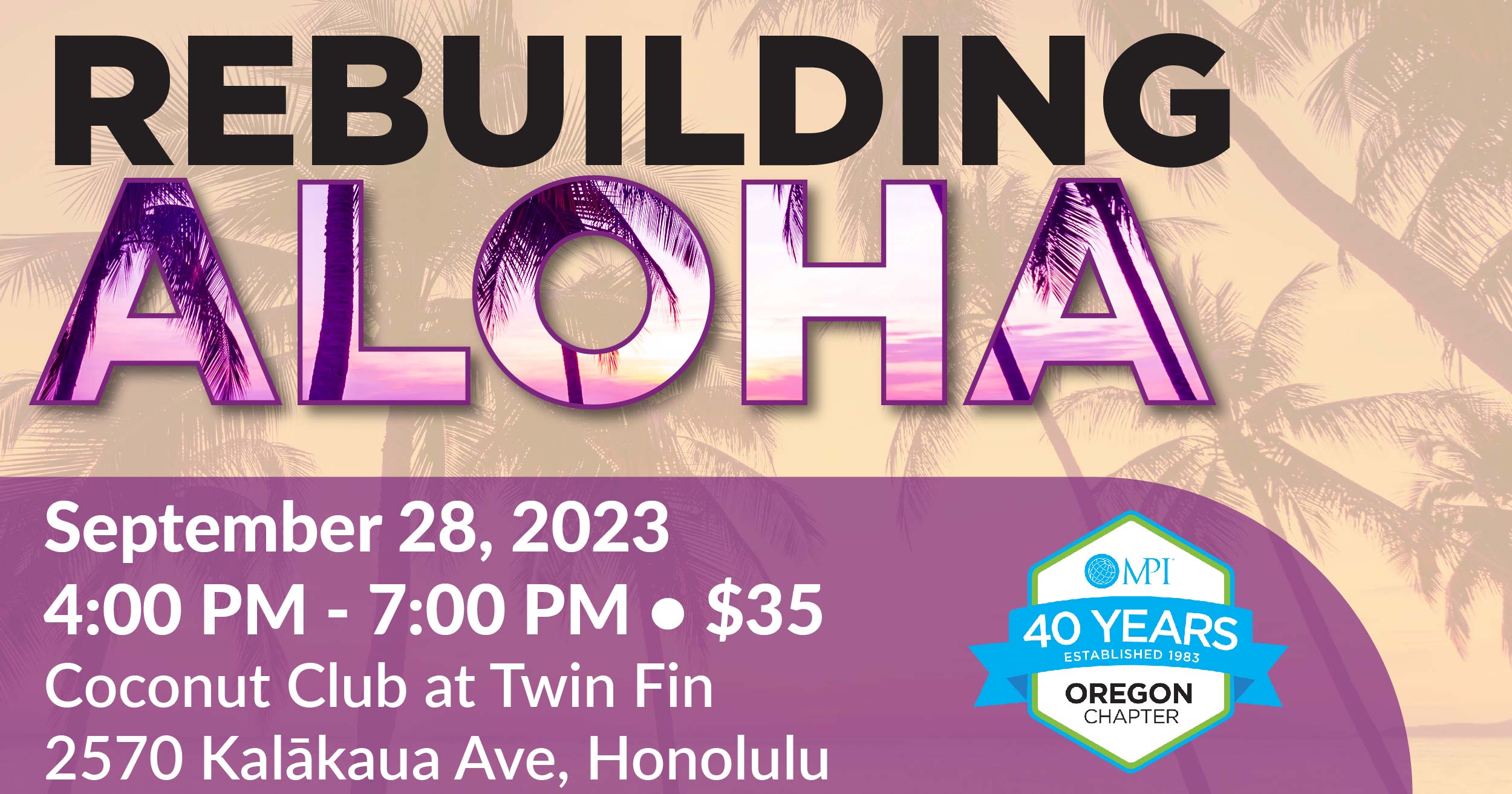 MPI Oregon/Aloha invites you for a grand evening of networking, drinks, and camaraderie.  Rebuilding Aloha with a networking event encouraging the relaunch of the MPI Aloha Chapter.