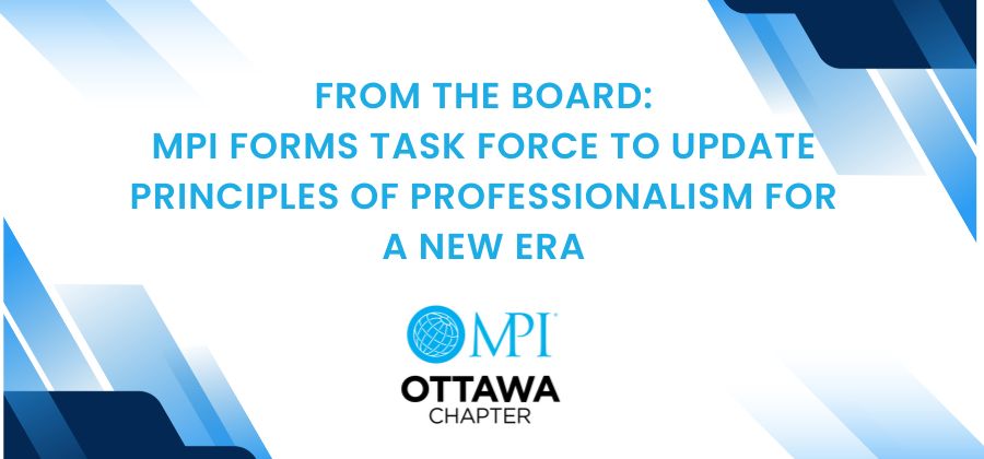 The task force comprised 15 individuals representing a diverse cross-section of MPI’s global membership. It was chaired by Anita Carlyle of the Toronto Chapter. Susan Prophet, also from the Toronto Chapter, and Louise Gervais from the Ottawa Chapter also participated in the review and recommendation process. Additionally, members from Europe, Latin America and the United States contributed valuable international perspectives. This global representation was essential in developing principles that are inclusive, culturally aware, and globally relevant.