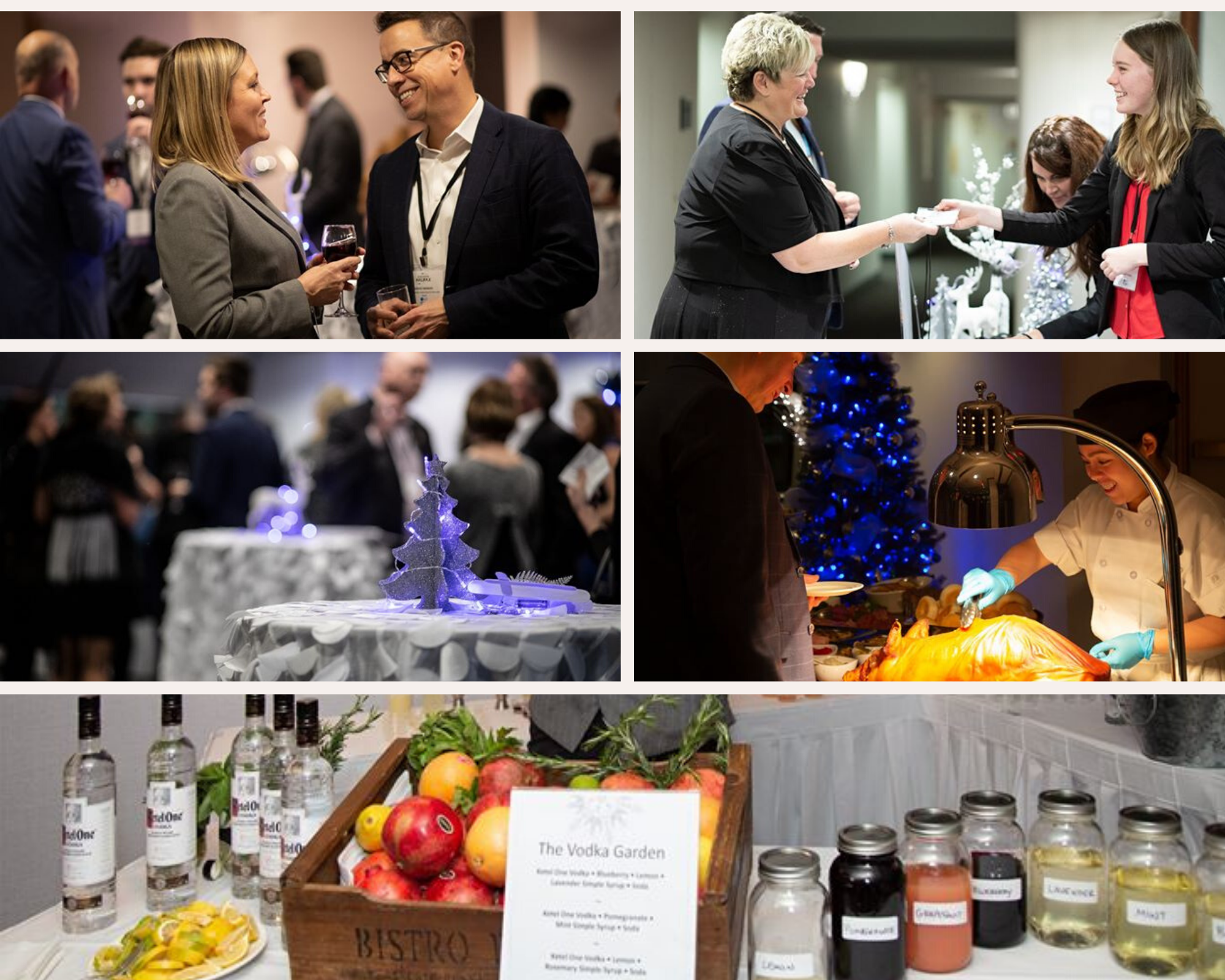 It was a cold winter’s day on Tuesday, December 10, 2019 as MPI Ottawa Chapter members and guests came together at the newly renovated Sheraton Ottawa Hotel to celebrate the festive season. This year’s theme was inspired by the children’s classic book series, The Chronicles of Narnia. Upon arrival, guests were directed to the 17th floor of the hotel where they were greeted at the registration desk. Up a final set of stairs, the cocktail reception took place in the ceiling-to-floor windowed penthouse where the theme was evident with white, icy decor and lighting. Surrounding the perimeter of the room was an array of delectable appetizers that attendees could sample at their leisure. From a roasted suckling pig action station and seafood selections to a vodka garden featuring unique cocktails, guests were able to mingle and nibble before being swept down to the main ballroom for dinner in a winter wonderland setting. Invited to enter the room through a “wardrobe”, attendees were enveloped inside the forest of