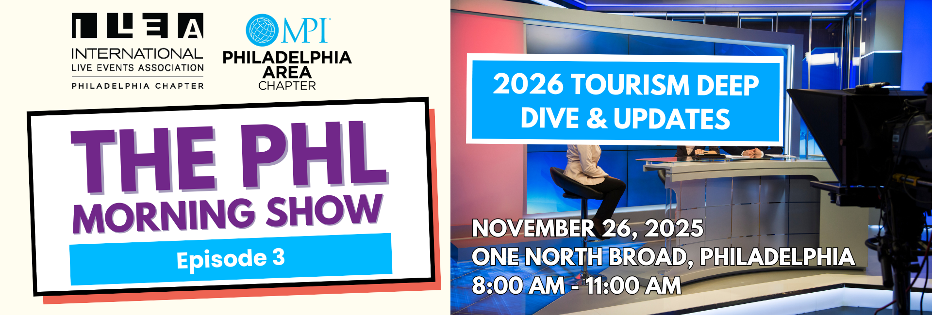 Join us live at ONE North Broad for coffee, conversation, and breakfast by Catering by Design. Then walk over with fellow attendees to the PHLCVB Annual Luncheon at the PA Convention Center—hospitality friends guaranteed!