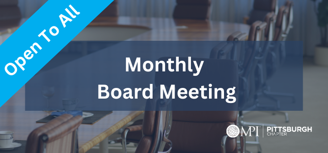 Monthly board meetings are virtual via Zoom. If you would like to attend, please email the chapter administrator at staff@mpipittsburgh.org for Zoom link.