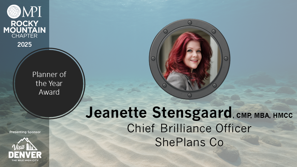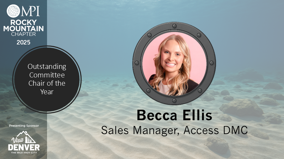 This award will recognize the achievement and accomplishments of MPI Rocky Mountain Chapter committee chair(s) that contributed to the overall development of the chapter and/or its members. Recipient(s) will have displayed innovation and creativity in the development, planning and execution that resulted in the effective delivery of business-to-business opportunities between members, member engagement, community outreach and/or displayed member growth. The committee contribution must have occurred between May 1st and April 30th.