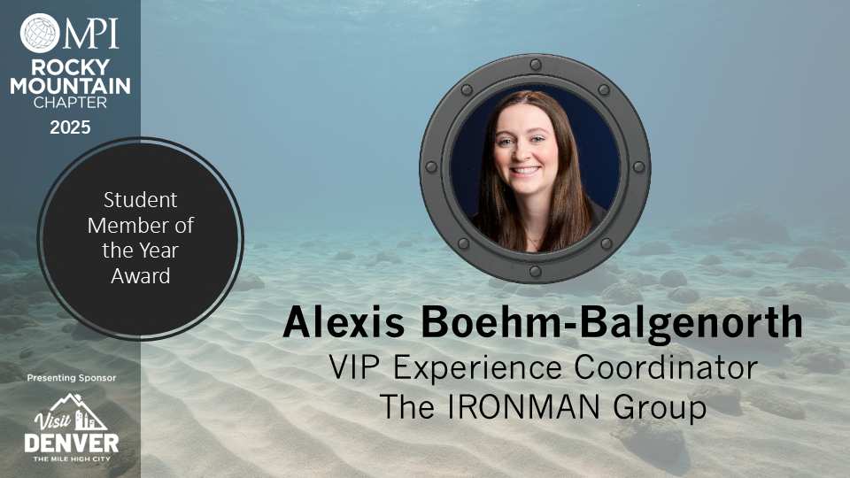 This award recognizes an individual that has been a member of MPI Rocky Mountain Chapter for less than three (3) years. This individual is recognized for having made outstanding contributions to MPI Rocky Mountain Chapter and to the meeting industry. The nominee must be a current, active and responsible member of MPI Rocky Mountain Chapter.