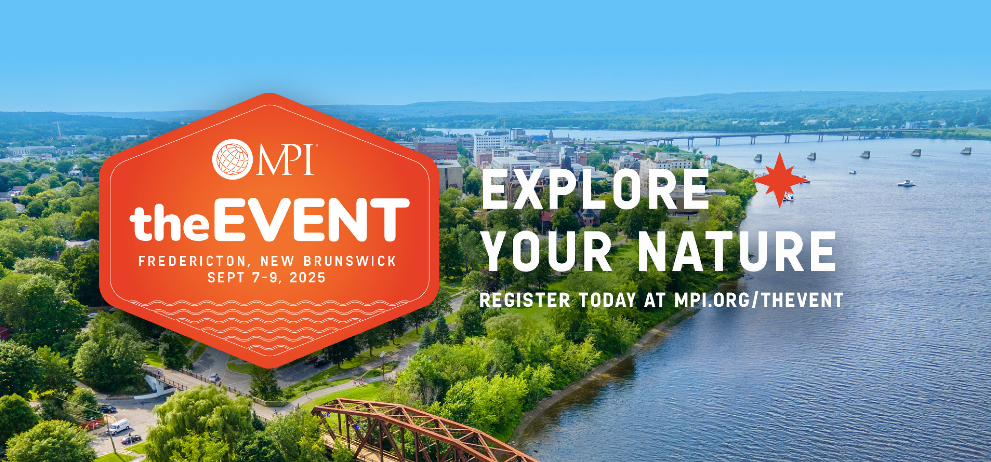 Our official event call to action for use across channels is: Gathering is in our nature. Creating exceptional events is in yours. Explore where both come to life at MPI’s theEVENT in Fredericton.