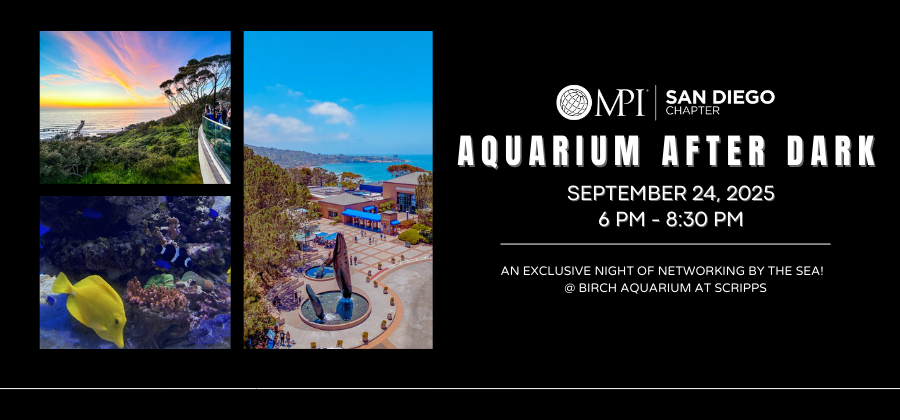 Connect with fellow meeting and event professionals as you explore the mesmerizing exhibits of the Birch Aquarium—perched above the Pacific with breathtaking ocean views. As the sun sets, enjoy a vibrant mix of light bites, refreshing drinks, and lively conversation while the aquarium comes to life after hours. Whether you're looking to expand your network, share ideas, or simply enjoy a unique San Diego experience, this event is the perfect opportunity to do it all in one of the San Diego's most iconic venues.
