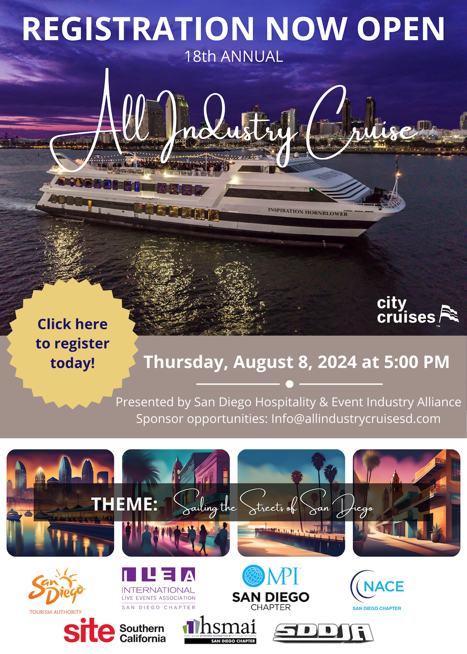 Set sail with us on August 8th, 2024, at 5 PM for an unforgettable evening celebrating the diverse vibes and flavors of San Diego neighborhoods. 🌆 Registration is now open—secure your spot today and don't miss out on the ultimate networking event for meeting and event professionals. 🎟️