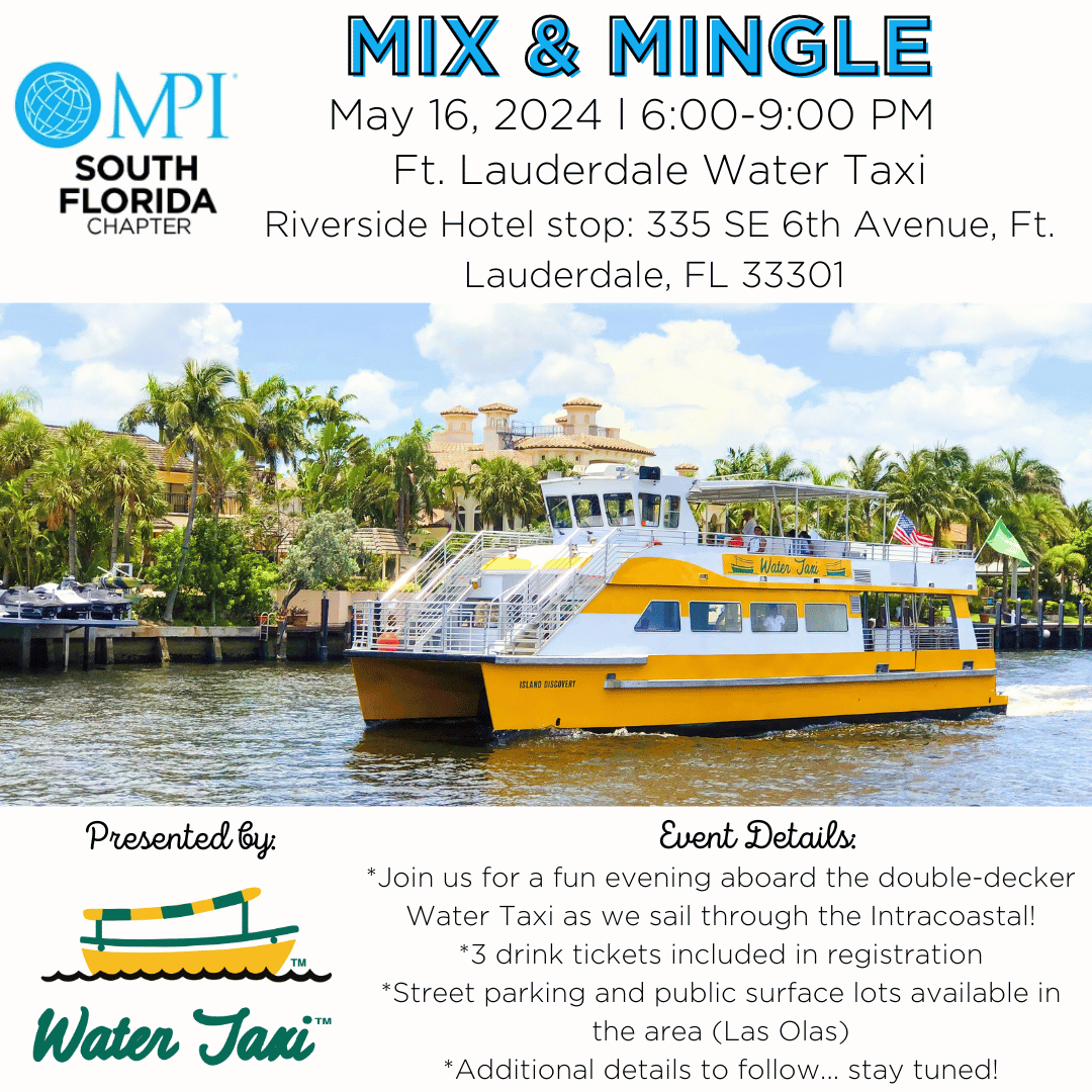 Join MPI South Florida for a night of networking, romance and industry connections at our May Mix & Mingle hosted on and by Ft. Lauderdale Water Taxi!